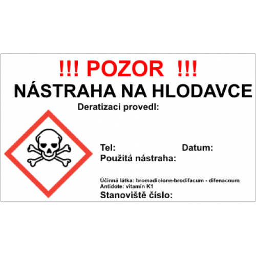Samolepící bezpečnostní etiketa na deratizační staničku